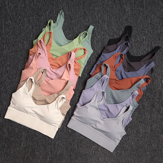 Gym Top Women Clothes Strappy Workout Tank Top Padded Sports Bra Backless Yoga Shirts Seamless Gym Crop Top Halter Fitness Vest