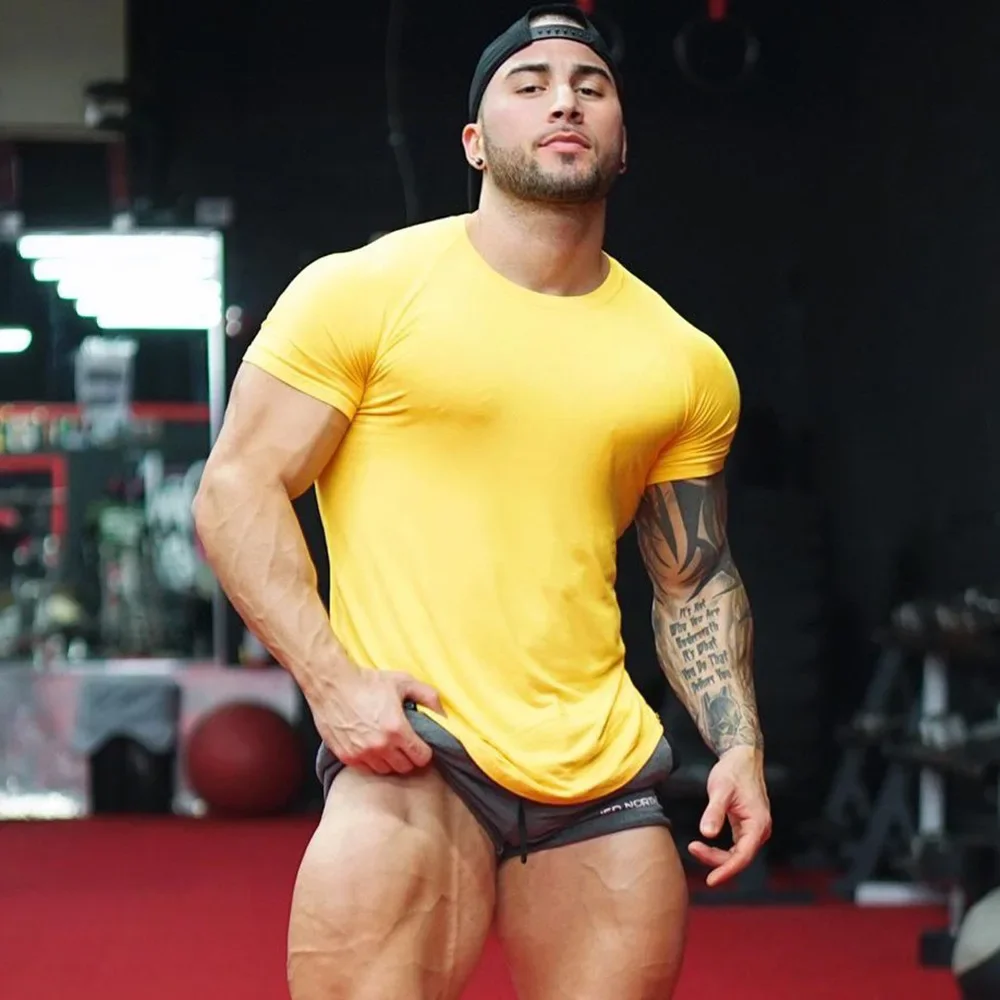 Men Tshirt Short Sleeve Slim Fit Muscle Bodybuilding Shirts Men Gym Fitness Workout Tee Shirt