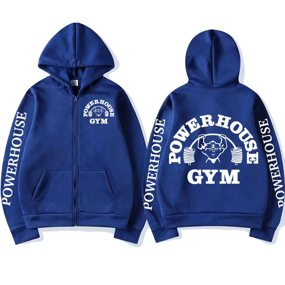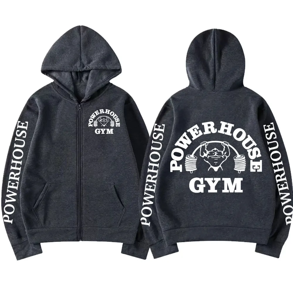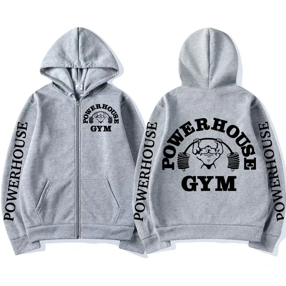 Powerhouse Gym Logo Zipper Hoodie Harajuku Men's Geek Fitness Cardigan Long Sleeve Sweatshirt Casual Fashion Oversized Pullovers