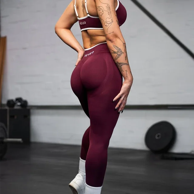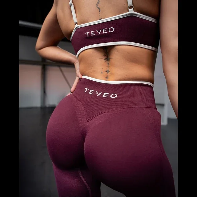TEVEO 2 Pcs Women's Gym Set Seamless Scrunch Leggings Workout Bra Set Yoga Fitness Clothing Combo
