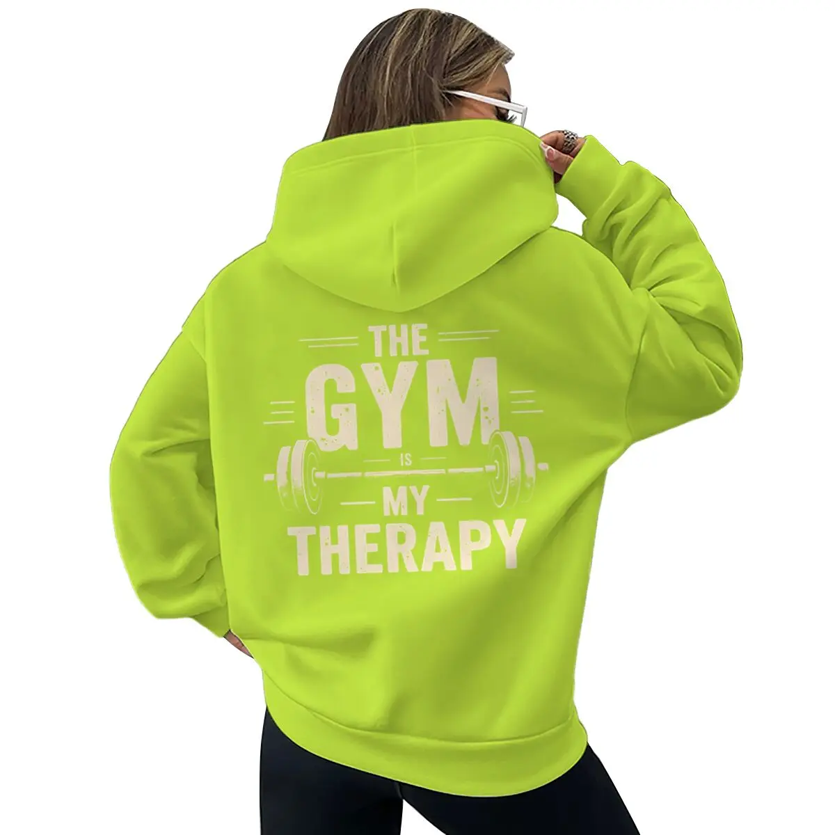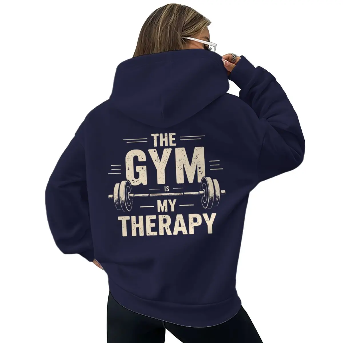 The Gym My Therapy Graphic Hoodie Men Women Kangaroo Pocket Pullover Long Sleeve Vintage Dumbbell Casual Fitness Hoodies