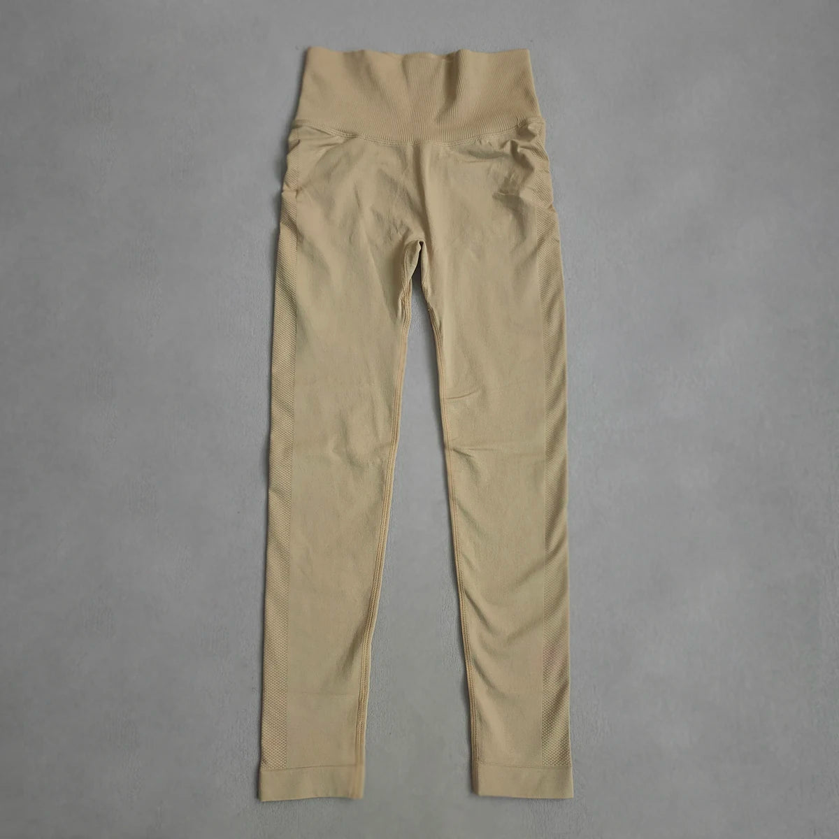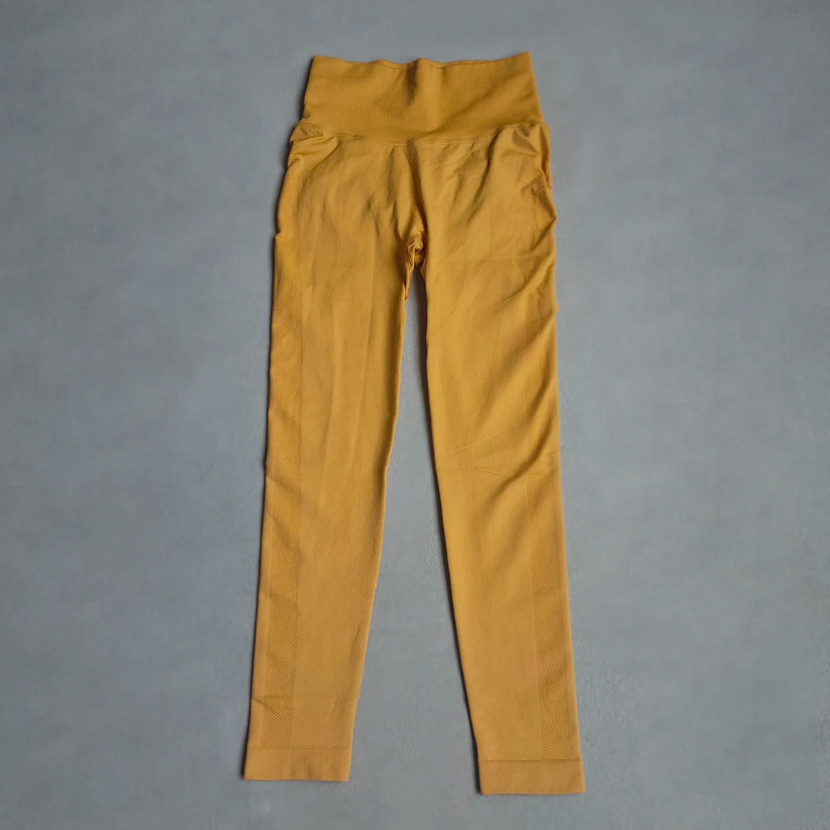 Elevate your workout with leggings designed to sculpt and support. These high-waist, seamless yoga leggings provide a flattering fit that lifts your hips and enhances your natural curves. Perfect for gym sessions, yoga flows, Pilates, or running, they combine style, comfort, and performance. The four-way stretch fabric moves with you while keeping you supported, making every workout feel effortless.