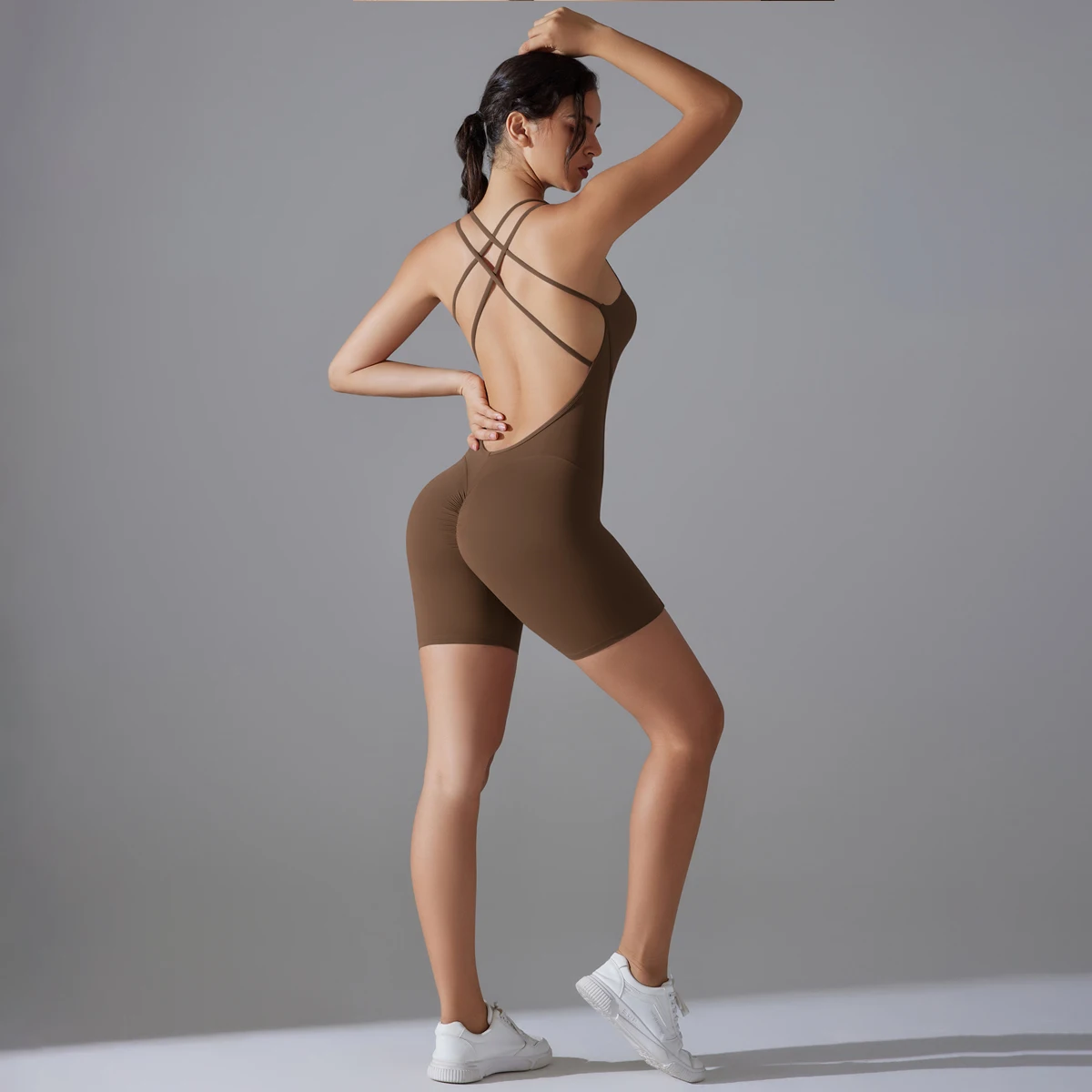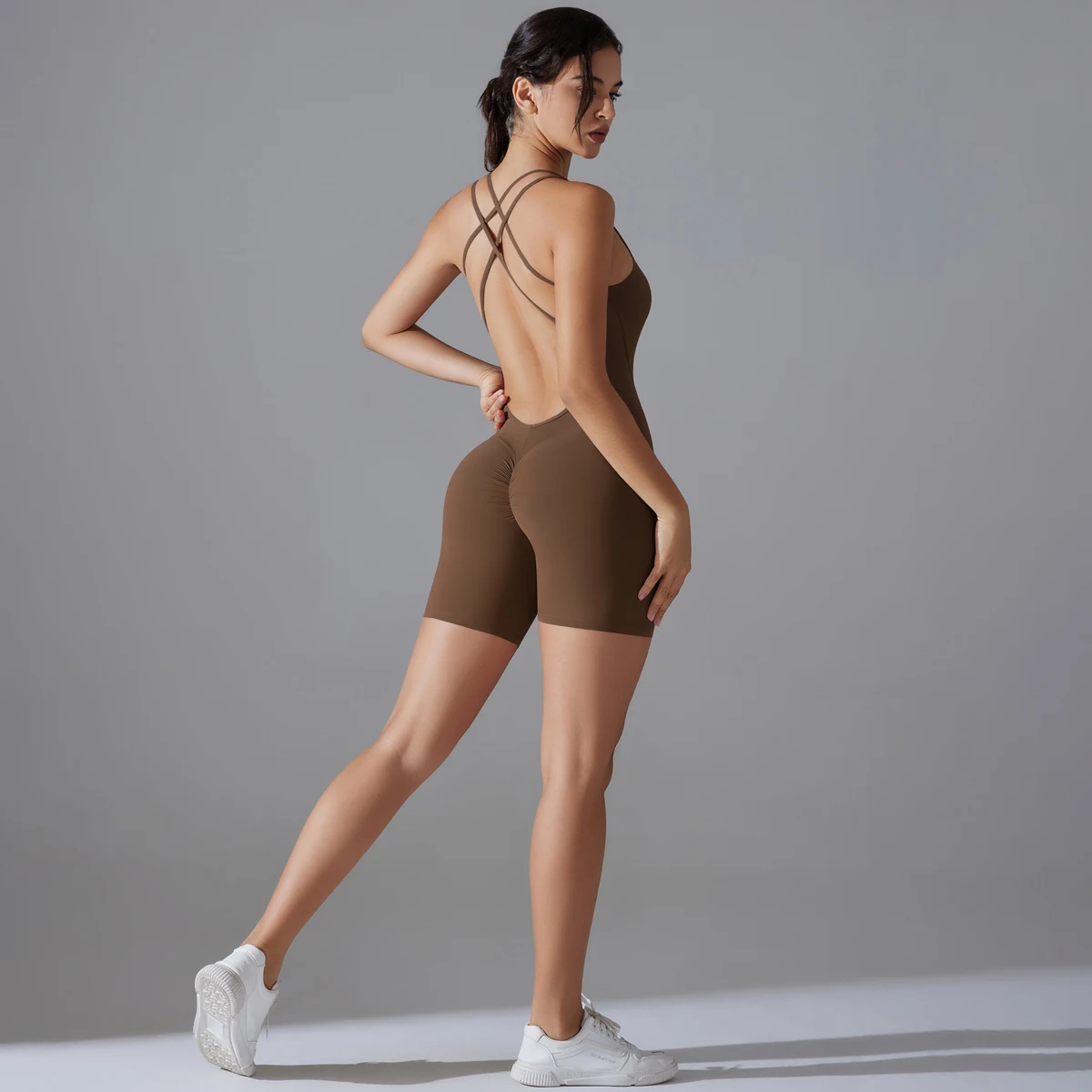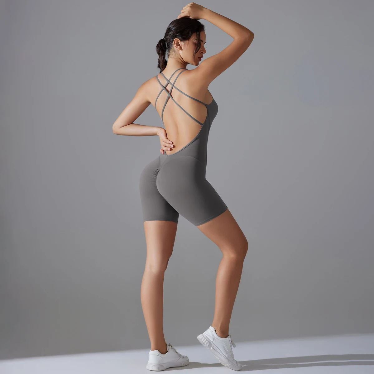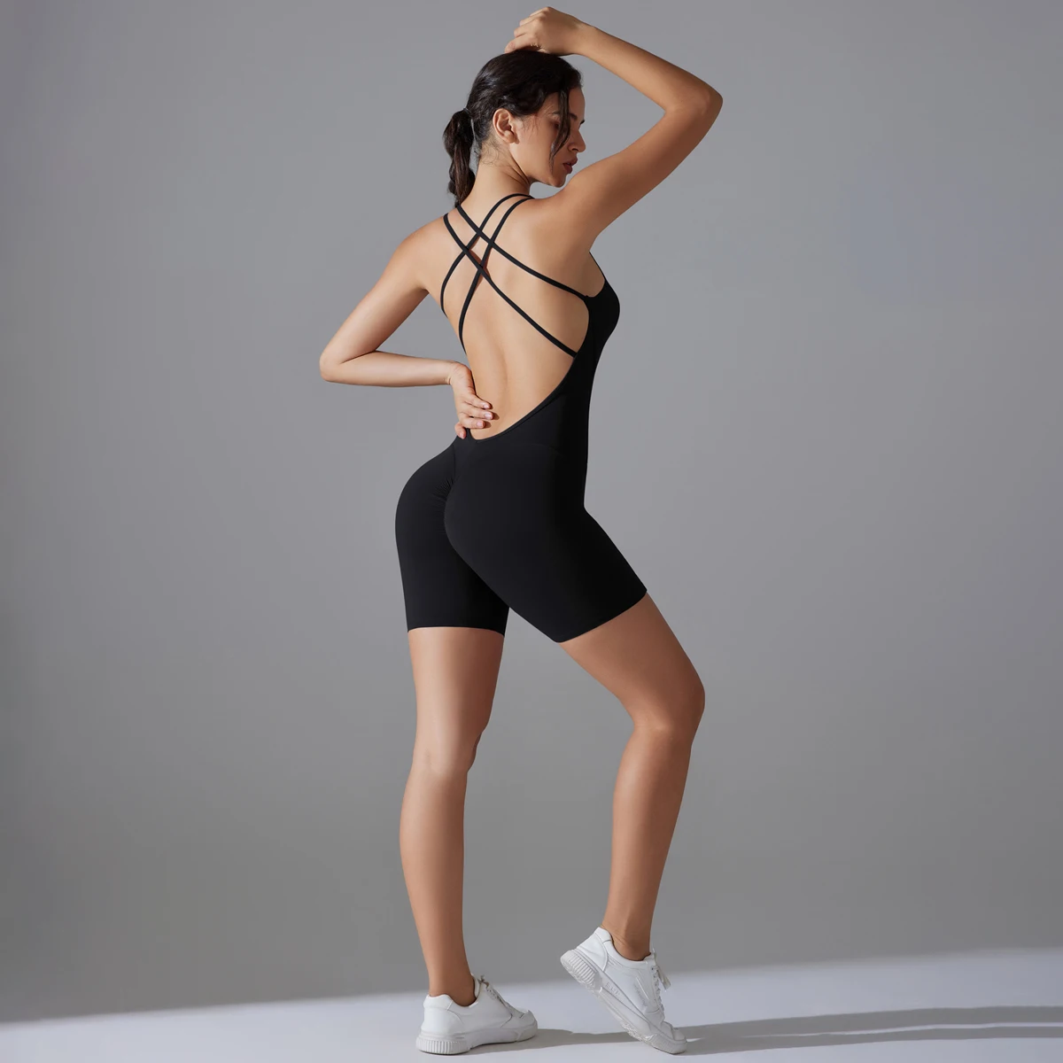 Yoga Set Romper Backless Set Fitness Bodysuit Stretch Bodysuit Gym Clothes Push Up Sportswear Tummy Control Skinny